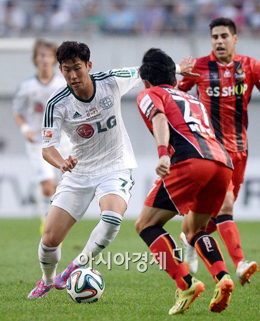 [아시아경제 김현민 기자] 30일 서울월드컵경기장에서 열린 FC서울과 바이엘 04 레버쿠젠의 친선경기에서 레버쿠젠 손흥민이 서울 고광민의 수비를 뚫고 공격하고 있다. 김현민 기자 kimhyun81@asiae.co.kr<ⓒ세계를 보는 창 경제를 보는 눈, 아시아경제(www.asiae.co.kr) 무단전재 배포금지>