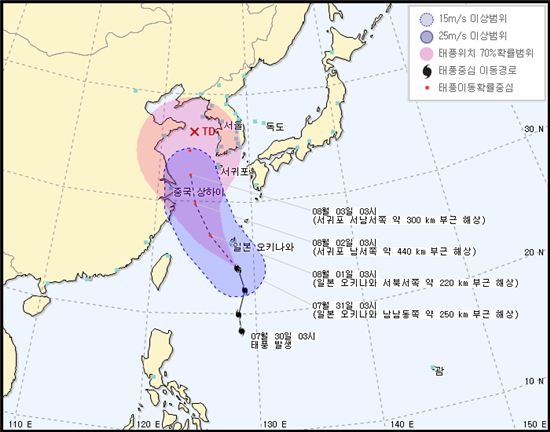 [아시아경제 온라인이슈팀] 나크리 경로 틀었다…오늘부터 한반도 간접 영향권 들어가12호 태풍 '나크리'(NAKRI)가 우리나라에 영향을 끼친다. 서울·경기는 낮부터 밤 사이 소나기가 내린다.31일 기상청에 따르면 전국이 대체로 구름 많고 흐린 날씨가 이어지는 가운데 곳곳에 비 소식이 있을 전망이다. 서울·경기·강원영서·충청내륙·남부지방은 낮부터 늦은 오후 사이에, 제주도는 낮에 소나기가 올 전망이다.기상청은 소나기가 천둥·번개·돌풍을 동반할 수 있다며 안전사고에 유의를 당부했다.이날 예상 강수량은 서울·경기내륙·강원영서·충청내륙·남부지방·제주도 등에서 5~40㎜다. 그러나 기상청은 북상 중인 12호 태풍 나크리의 발달 정도와 진로에 따라 강수지역과 강수량의 변동이 크겠다고 밝혔다.특히 제주도 남쪽은 12호 태풍 나크리의 간접 영향으로 이날 오후 풍랑특보가 발표될 가능성이 있어 해수욕객이나 해안가 낚시객들이 각별히 유의해야 한다.이날 오전 예상 최저기온은 △서울 24도 △대전 24도 △부산 25도 △대구 25도 △광주 25도 등이다. 낮 예상 최고기온은 △서울 33도 △대전 33도 △부산 31도 △대구 34도 △광주 32도 등이다.나크리 경로 소식을 접한 누리꾼은 "12호 태풍 나크리 경로, 어젠 상하이 거쳐 중국 상륙한다더니 경로가 바뀌었네" "12호 태풍 나크리 경로, 어쩐지 잠잠하다 했다" "12호 태풍 나크리 경로, 큰 피해 없이 비만 좀 내려줘라" 등의 반응을 보였다.온라인이슈팀 <ⓒ세계를 보는 창 경제를 보는 눈, 아시아경제(www.asiae.co.kr) 무단전재 배포금지>