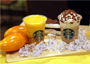 스타벅스커피 코리아가 얼음을 갈아 만드는 혼합음료인 '이탤리언 커피 쿠키 프라푸치노'와 '망고 후르츠 푸딩 블렌디드 주스' 2종을 선보였다.