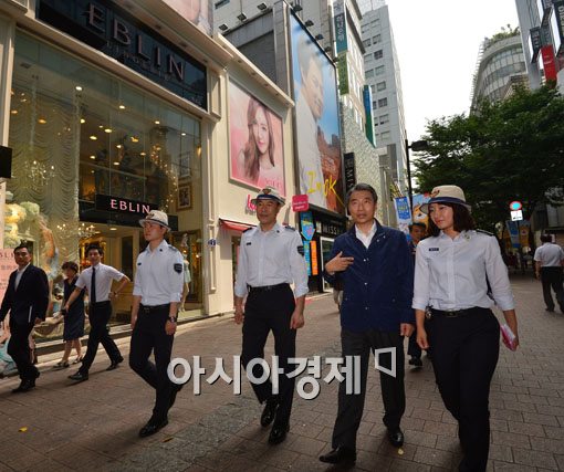 [아시아경제 백소아 기자] 정종섭 안전행정부 장관(오른쪽부터 두 번째)이 30일 서울 중구 예술극장 인근에서 관광경찰들과 명동거리를 둘러보고 있다. 이날 정 장관은 명동파출소, 경찰관광대 명동센터, 서울종합방재센터를 방문했다.백소아 기자 sharp2046@asiae.co.kr<ⓒ세계를 보는 창 경제를 보는 눈, 아시아경제(www.asiae.co.kr) 무단전재 배포금지>
