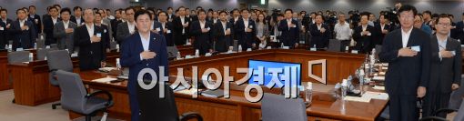 [아시아경제 최우창 기자]최경환 경제부총리 겸 기획재정부 장관을 비롯한 39개 부채·방만경영 중점관리기관장, 126개 기관 감사, 공운위 민간위원 등이 31일 정부서울청사 별관에서 열린 공공기관 정상화 워크숍에 참석, 국민의례를 하고 있다. 최우창 기자 smicer@asiae.co.kr<ⓒ세계를 보는 창 경제를 보는 눈, 아시아경제(www.asiae.co.kr) 무단전재 배포금지>