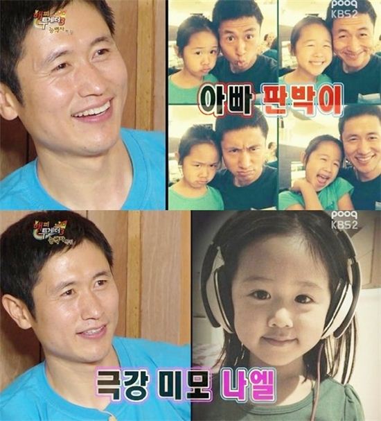 [아시아경제 온라인이슈팀] '해피투게더' 이영표 딸 공개 "아빠랑 똑같이 생겼네"전 축구선수 이영표가 방송에서 두 딸 하엘과 나엘을 공개해 화제다.31일 방송된 KBS2TV '해피투게더3'에는 이영표, 정준호, 김흥국, 조우종, 정지원이 출연해 화려한 입담을 과시했다.이날 이영표는 두 딸 하엘과 나엘의 사진을 공개했다. 공개된 사진 속 하엘과 나엘은 이영표의 눈을 꼭 닮은 외모로 눈길을 끌었다. 또 사진 속 하엘과 나엘은 앙증맞게 귀여운 외모로 보는 이들을 흐뭇하게 만들었다.'해피투게더' 이영표 딸 모습을 접한 네티즌은 "'해피투게더'이영표 딸, 너무 귀엽다" ''해피투게더'이영표 딸, 딸바보될만 하네" "'해피투게더'이영표 딸, 아빠랑 똑같네" 등의 반응을 보였다.온라인이슈팀 <ⓒ세계를 보는 창 경제를 보는 눈, 아시아경제(www.asiae.co.kr) 무단전재 배포금지>
