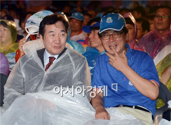이낙연 전남도지사가 1일 정남진 장흥 물축제 개막식에 참석 축사를 하고 있다.