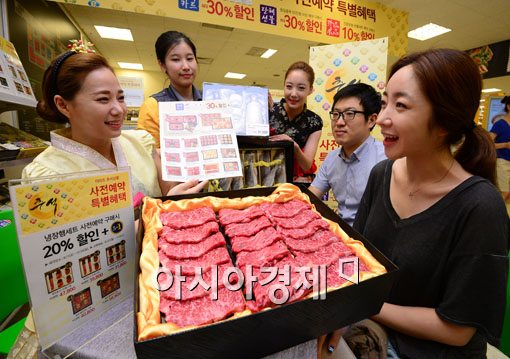 [아시아경제 백소아 기자] 3일 서울 용산구 이마트 용산점에서 한 고객이 추석 선물세트 예약판매 안내를 받고 있다. 이마트는 추석 선물세트를 10%~30% 저렴하게 미리 구입할 수 있는 사전 예약판매를 시작했다.백소아 기자 sharp2046@asiae.co.kr<ⓒ세계를 보는 창 경제를 보는 눈, 아시아경제(www.asiae.co.kr) 무단전재 배포금지>