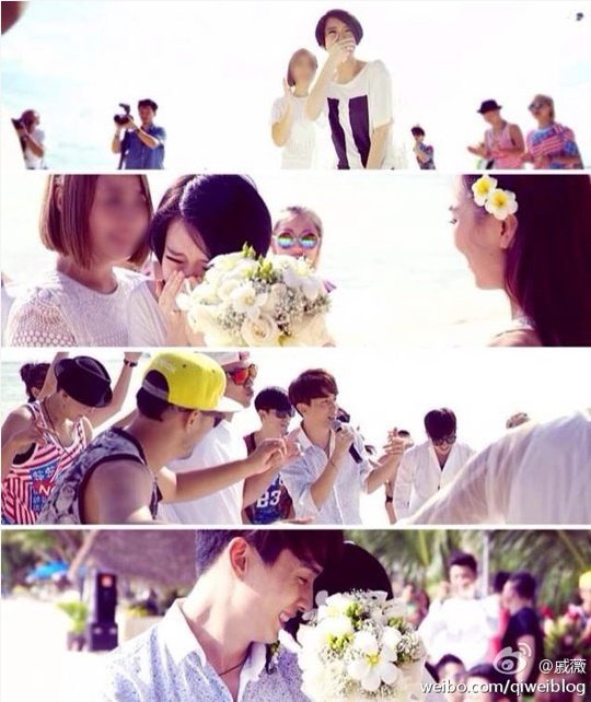그룹 테이크 출신의 이승현이 연인인 중국 스타 치웨이에게 공개 청혼을 했다.(사진: 치웨이 웨이보)