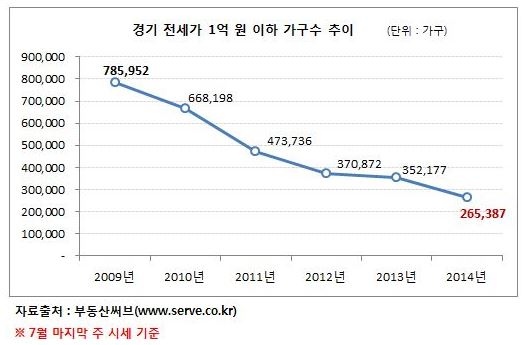 [표] 경기도 1억원 이하 전세 가구수 (자료제공 : 부동산써브)