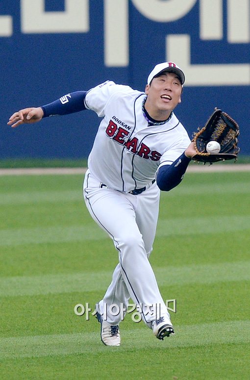 아시아경제 김현민 기자] 5일 서울 잠실구장에서 열린 프로야구 KIA 타이거즈와 두산 베어스의 경기, 두산 좌익수 김현수가 1회초 2사에서 KIA 필의 타구를 빠르게 달려와 잡아내고 있다. 김현민 기자 kimhyun81@asiae.co.kr<ⓒ세계를 보는 창 경제를 보는 눈, 아시아경제(www.asiae.co.kr) 무단전재 배포금지>