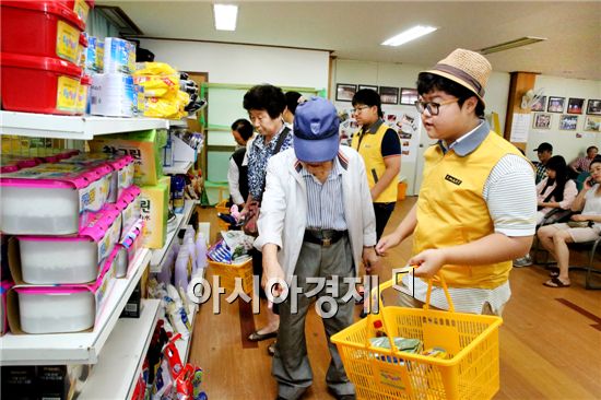 광주광역시 동구(청장 노희용)는 6일 서남동 주민자치센터에서 기초수급자, 긴급복지지원 대상자에게 계란, 라면, 세제 등 본인이 필요한 생필품을 5만원 한도에서 선택할 수 있는 희망배달마차를 열었다. 사진제공=광주시 동구 <br />