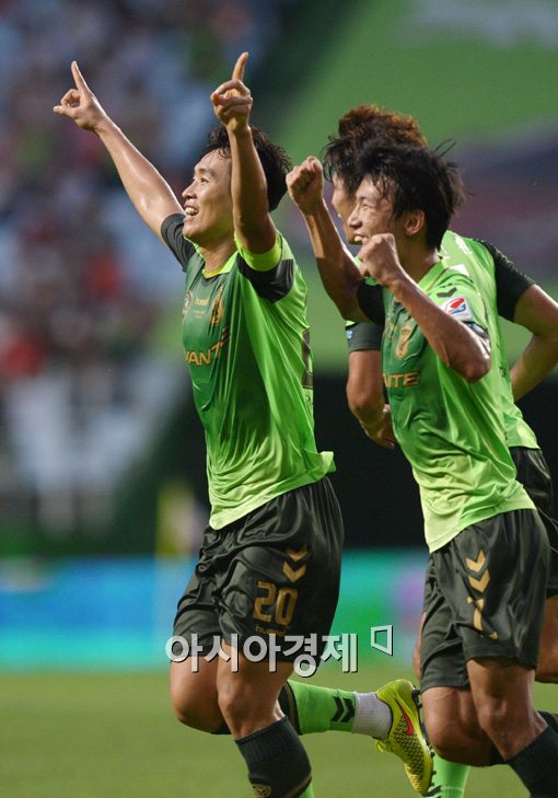 [전주=아시아경제 김현민 기자] 6일 전주월드컵경기장에서 열린 프로축구 'K리그 클래식 2014' 전북 현대와 수원 삼성의 경기에서 전북 이동국이 선제골을 성공시키고 세리머니하고 있다. 이동국은 이번 선제골로 162골을 기록하며 K리그 최다골 신기록 경신을 이어가고 있다.김현민 기자 kimhyun81@asiae.co.kr<ⓒ세계를 보는 창 경제를 보는 눈, 아시아경제(www.asiae.co.kr) 무단전재 배포금지>