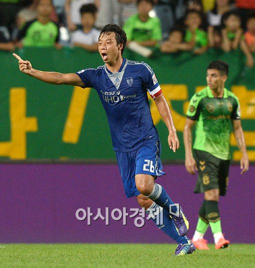 [전주=아시아경제 김현민 기자] 6일 전주월드컵경기장에서 열린 프로축구 'K리그 클래식 2014' 전북 현대와 수원 삼성의 경기에서 수원 염기훈이 프리킥 동점골을 성공시키고 환호하고 있다.김현민 기자 kimhyun81@asiae.co.kr<ⓒ세계를 보는 창 경제를 보는 눈, 아시아경제(www.asiae.co.kr) 무단전재 배포금지>