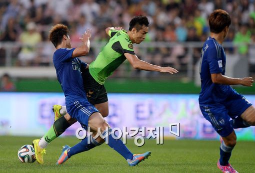 [전주=아시아경제 김현민 기자] 6일 전주월드컵경기장에서 열린 프로축구 'K리그 클래식 2014' 전북 현대와 수원 삼성의 경기에서 전북 이동국이 상대의 거친 수비에 넘어지고 있다.김현민 기자 kimhyun81@asiae.co.kr<ⓒ세계를 보는 창 경제를 보는 눈, 아시아경제(www.asiae.co.kr) 무단전재 배포금지>