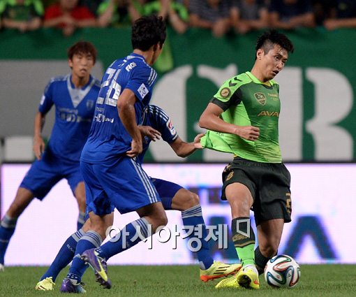 [전주=아시아경제 김현민 기자] 6일 전주월드컵경기장에서 열린 프로축구 'K리그 클래식 2014' 전북 현대와 수원 삼성의 경기에서 전북 이동국이 상대 수비를 막혀 패스하고 있다. 이동국은 이날 선제골과 결승골을 터뜨리며 K리그 최다골 신기록 경신을 이어갔다. 김현민 기자 kimhyun81@asiae.co.kr<ⓒ세계를 보는 창 경제를 보는 눈, 아시아경제(www.asiae.co.kr) 무단전재 배포금지>