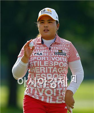 박인비가 마이어클래식 첫날 18번홀에서 파 퍼트를 마무리한 뒤 갤러리를 향해 손을 들어 인사하고 있다. 그랜드래피즈(美 미시건주)=Getty images/멀티비츠