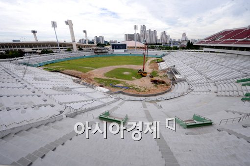 [수원=아시아경제 김현민 기자] 프로야구 신생팀 kt위즈의 홈구장으로 사용될 수원야구장이 1일 공정율 85%를 보이며 공사가 진행중이다. 이철 리모델링 공사 현장소장은 오는 10월 말이면 120만 수원시민들을 위한 새 야구장이 완공될 것이라고 밝혔다.김현민 기자 kimhyun81@asiae.co.kr<ⓒ세계를 보는 창 경제를 보는 눈, 아시아경제(www.asiae.co.kr) 무단전재 배포금지>