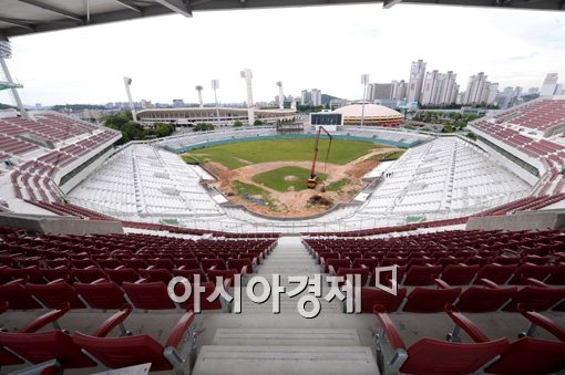 [수원=아시아경제 김현민 기자] 프로야구 신생팀 kt위즈의 홈구장으로 사용될 수원야구장이 1일 공정율 85%를 보이며 공사가 진행중이다. 이철 리모델링 공사 현장소장은 오는 10월 말이면 120만 수원시민들을 위한 새 야구장이 완공될 것이라고 밝혔다.김현민 기자 kimhyun81@asiae.co.kr<ⓒ세계를 보는 창 경제를 보는 눈, 아시아경제(www.asiae.co.kr) 무단전재 배포금지>