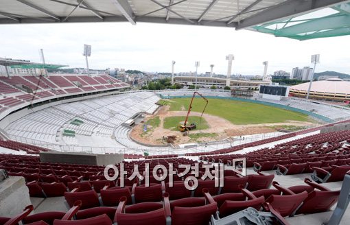 [수원=아시아경제 김현민 기자] 프로야구 신생팀 kt위즈의 홈구장으로 사용될 수원야구장이 1일 공정율 85%를 보이며 공사가 진행중이다. 이철 리모델링 공사 현장소장은 오는 10월 말이면 120만 수원시민들을 위한 새 야구장이 완공될 것이라고 밝혔다.김현민 기자 kimhyun81@asiae.co.kr<ⓒ세계를 보는 창 경제를 보는 눈, 아시아경제(www.asiae.co.kr) 무단전재 배포금지>