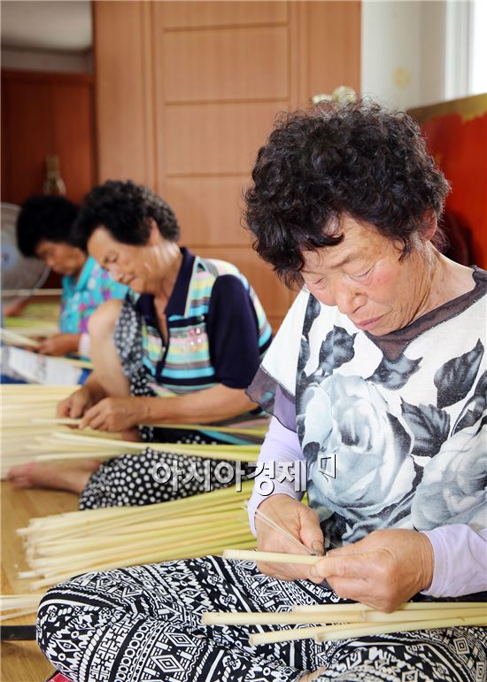 이 마을주민들은 5대째 전통방식을 고수해 이곳 왕골공예품을 찾는 주문이 꾸준히 이어지고 있다. 사진제공=함평군 노호성씨