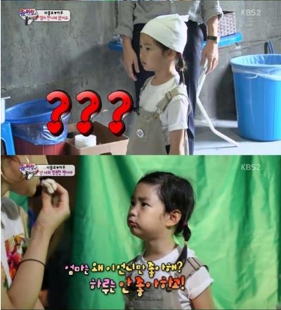 강혜정의 딸 이하루가 아역배우 이레를 질투해 화제다.(사진:KBS 2TV '슈퍼맨이 돌아왔다' 방송 캡처)