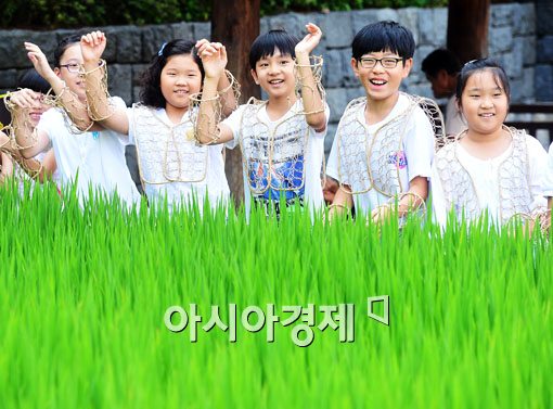 [아시아경제 백소아 기자] 11일 서울 서대문구 농협박물관에서 초등학생들이 자신이 직접 만든 등토시와 등등거리를 입고 밝게 웃고 있다. 등나무 덩굴 줄기를 가늘게 쪼개어 엮어 만든 등토시와 등등거리는 윗옷을 입기 전 몸에 걸쳐 입어 땀이 옷에 배지 않게 한다.백소아 기자 sharp2046@asiae.co.kr<ⓒ세계를 보는 창 경제를 보는 눈, 아시아경제(www.asiae.co.kr) 무단전재 배포금지>