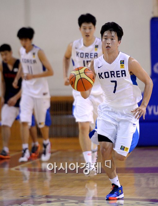 [용인=아시아경제 김현민 기자] 18세 이하 남자농구 국가대표팀이 11일 경기도 용인시 경희대학교 국제캠퍼스 체육관에서 훈련을 하고 있다. 대표팀은 오는 19일부터 28일까지 카타르 도하에서 열리는 제23회 FIBA 18세 이하 아시아남자농구선수권대회에 출전한다.김현민 기자 kimhyun81@asiae.co.kr<ⓒ세계를 보는 창 경제를 보는 눈, 아시아경제(www.asiae.co.kr) 무단전재 배포금지>