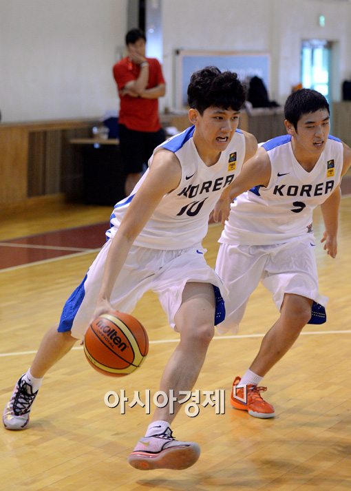 [용인=아시아경제 김현민 기자] 18세 이하 남자농구 국가대표팀이 11일 경기도 용인시 경희대학교 국제캠퍼스 체육관에서 훈련을 하고 있다. 대표팀은 오는 19일부터 28일까지 카타르 도하에서 열리는 제23회 FIBA 18세 이하 아시아남자농구선수권대회에 출전한다.김현민 기자 kimhyun81@asiae.co.kr<ⓒ세계를 보는 창 경제를 보는 눈, 아시아경제(www.asiae.co.kr) 무단전재 배포금지>