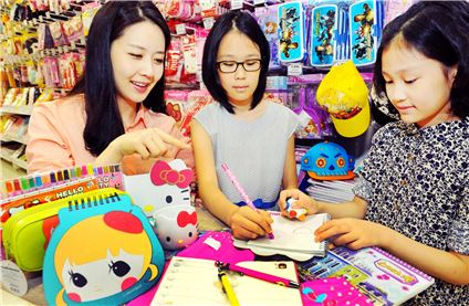 14일 서울 홈플러스 영등포점에서 모델들이 신학기 용품을 선보이고 있다. 홈플러스는 가을학기를 맞아 14일부터 다음달 3일까지 전국 점포와 인터넷쇼핑몰에서 신학기 용품을 최대 50% 할인 판매한다. 이번 행사는 문구, 서적, 가방, 의류, 잡화 등 총 1800여 종에 대해 역대 최대 수준의 물량을 준비한 것이 특징이다.<br />