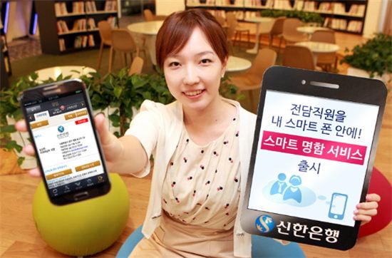 [아시아경제 고형광 기자] 신한은행은 스마트폰뱅킹 앱(App)으로 직원의 명함을 수신할 수 있는 스마트명함 서비스를 출시했다고 14일 밝혔다.이 서비스를 이용하면 신한은행 스마트폰뱅킹 앱인 '신한S뱅크'로 직원이 보낸 명함을 확인할 수 있다.고객이 명함을 조회한 후 해당 명함에서 직원에게 전화걸기 또는 연락처 저장이 가능하다. 직원별로 설정한 상담 가능 시간대에 실시간으로 메시지를 전송 하거나 전화상담 요청도 가능하다.이 서비스는 올해 초 직원들을 대상으로 진행된 스마트금융 아이디어 공모전에서 최우수상을 수상한 '스마트 직원호출시스템'과 '명함이미지 SMS발송' 아이디어를 결합해 개발됐다.신한은행 관계자는 "앞으로도 고객의 니즈와 이용 패턴을 고려한 서비스를 도입해 금융라이프 진화를 선도하겠다"고 말했다.고형광 기자 kohk0101@asiae.co.kr<ⓒ세계를 보는 창 경제를 보는 눈, 아시아경제(www.asiae.co.kr) 무단전재 배포금지>