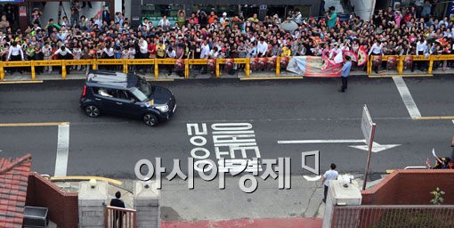 [사진공동취재단] 프란치스코 교황이 14일 오후 서울 관악구 중곡동 한국천주교중앙협의회로 들어서고 있다. 교황을 보기 위해 모인 시민들이 교황이 탄 차가 지나가자 환호하고 있다.백소아 기자 sharp2046@asiae.co.kr<ⓒ세계를 보는 창 경제를 보는 눈, 아시아경제(www.asiae.co.kr) 무단전재 배포금지>
