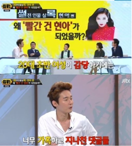 허지웅이 현아에 대한 악플에 대한 자신의 의견을 밝혔다.(사진:JTBC '썰전' 방송 캡처)