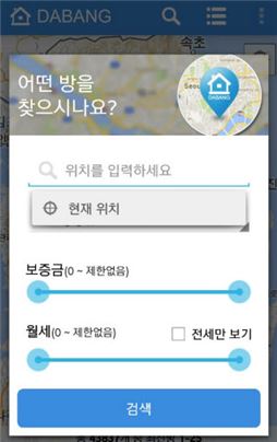 인기 앱 '다방'의 첫 화면. 원하는 위치와 정보 등을 입력하면 '맞춤형' 방을 찾아준다.