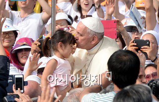 [포토]프란치스코 교황 '오늘은 모든 한국인에게 큰 기쁨의 날'