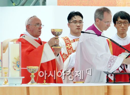 [사진공동취재단] 프란치스코 교황 방한 일정 중 가장 큰 행사인 `윤지충 바오로와 동료 순교자 123위 시복식`이 16일 오전 광화문 일대에서 열렸다. 프란치스코 교황이 시복식 미사를 집전하고 있다.백소아 기자 sharp2046@asiae.co.kr<ⓒ세계를 보는 창 경제를 보는 눈, 아시아경제(www.asiae.co.kr) 무단전재 배포금지>