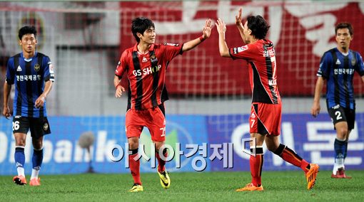 [아시아경제 김현민 기자] 16일 서울월드컵경기장에서 열린 프로축구 'K리그 클래식 2014' FC 서울와 인천 유나이티드의 경기에서 서울 이상협이 팀의 다섯번째 골을 성공시키고 동료들과 기쁨을 나누고 있다. 김현민 기자 kimhyun81@asiae.co.kr<ⓒ세계를 보는 창 경제를 보는 눈, 아시아경제(www.asiae.co.kr) 무단전재 배포금지>