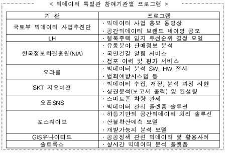 [아시아경제 박혜정 기자]한국토지주택공사(LH)는 25~27일 서울 코엑스에서 열리는 '2014 스마트 국토엑스포'에서 빅데이터와 공간정보가 결합된 공간빅데이터를 시현할 수 있는 '빅데이터 특별관'을 마련한다고 17일 밝혔다.빅데이터란 수치 데이터뿐만 아니라 문자와 영상 데이터를 포함하는 대규모 데이터를 말한다. 과거 아날로그 환경에서 생성되던 데이터에 비해 규모가 방대하고 생성주기도 짧다.LH는 스마트 국토엑스포에서 빅데이터와 공간정보가 결합된 공간빅데이터를 체험할 수 있는 기회를 마련한다. 빅데이터 특별관에는 정부의 빅데이터 정책·시범사업 현황, 빅데이터 활용사례, 누구나 체험할 수 있는 프로그램이 소개된다. 창업 준비자를 위해서는 상권분석보고서와 컨설팅 기회가 주어진다.예를 들어 이동통신 자료와 신용정보, 청약가입 정보 등을 활용한 LH의 행복주택 입지 우선순위 결정 모델과 같은 정책 분야의 빅데이터 활용 사례가 공개된다. 또 지역별·날씨별 판매정보 분석, 스마트폰 차량관제 등 일상생활의 다양한 분야에서 활용되는 빅데이터 사례가 시현된다. 한편 이번 행사에는 국토부 공간빅데이터 사업추진단, LH, 한국정보화진흥원 등 3개 공공기관과 한국오라클, SK텔레콤, 오픈SNS, 포스웨이브, GIS유나이티드, 솔트룩스 등 6개 빅데이터 전문기업이 참여한다. 박혜정 기자 parky@asiae.co.kr<ⓒ세계를 보는 창 경제를 보는 눈, 아시아경제(www.asiae.co.kr) 무단전재 배포금지>