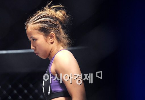 [아시아경제 김현민 기자] '미녀 파이터' 송가연(21.TEAM ONE)이 17일 서울 방이동 올림픽공원 올림픽홀에서 열린 이종격투기 '로드FC 017'에서 일본의 에미 야마모토(33)을 상대로 데뷔전을 치르고 있다.김현민 기자 kimhyun81@asiae.co.kr<ⓒ세계를 보는 창 경제를 보는 눈, 아시아경제(www.asiae.co.kr) 무단전재 배포금지>