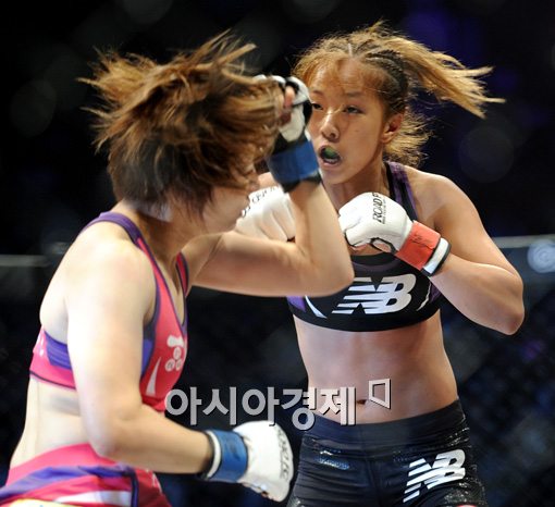[아시아경제 김현민 기자] '미녀 파이터' 송가연(21.TEAM ONE)이 17일 서울 방이동 올림픽공원 올림픽홀에서 열린 이종격투기 '로드FC 017' 일본의 에미 야마모토(33)와의 데뷔전을 치르고 있다. 결과는 1라운드 TKO 승리. 김현민 기자 kimhyun81@asiae.co.kr<ⓒ세계를 보는 창 경제를 보는 눈, 아시아경제(www.asiae.co.kr) 무단전재 배포금지>