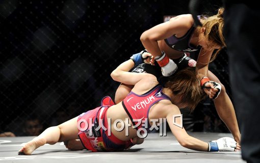 [아시아경제 김현민 기자] '미녀 파이터' 송가연(21.TEAM ONE)이 17일 서울 방이동 올림픽공원 올림픽홀에서 열린 이종격투기 '로드FC 017' 일본의 에미 야마모토(33)와의 데뷔전을 치르고 있다. 결과는 1라운드 TKO 승리. 김현민 기자 kimhyun81@asiae.co.kr<ⓒ세계를 보는 창 경제를 보는 눈, 아시아경제(www.asiae.co.kr) 무단전재 배포금지>