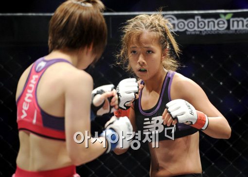 [아시아경제 이종길 기자]“진짜 신난다.”송가연(20·팀 원)이 옥타곤 위를 펄쩍펄쩍 뛰었다. 어린아이처럼 즐거워했다. 검지로 하늘을 찌르더니 이내 “꺅”하고 소리를 질렀다. 결점 없는 데뷔 경기 승리에 대한 환호였다. 송가연은 17일 서울 올림픽공원 올림픽홀에서 열린 종합격투기대회 ‘로드 FC 017’ 여자 47.5kg 계약체중 경기에서 TKO로 이겼다. 자신보다 13살이 많은 일본의 에미 야마모토(34·모리짐)를 경기 시작 2분23초 만에 파운딩으로 쓰러뜨렸다. 시작부터 화끈한 타격으로 기선을 제압했다. 에미의 얼굴에 잇달아 펀치를 꽂더니 테이크 다운을 이뤘다. 이어진 몸싸움에서 밀리지 않은 송가연은 다시 한 번 펀치로 승부수를 띄웠다. 상대의 턱과 오른 안면에 스트레이트와 훅을 꽂았고 이어진 테이크다운에서 사정없이 파운딩 펀치를 퍼부었다. 주심이 경기를 중단시키자 송가연은 그대로 환호성을 지르며 옥타곤을 이리저리 뛰어다녔다. 체육관을 가득 메운 관중은 일제히 기립 박수로 프로 데뷔 경기 승리를 축하했다. 경기 전 송가연은 너무 약한 상대와 맞붙는 것이 아니냐는 비난을 받았다. 에미는 프로 경험이 없다. 4년 동안 아마추어로 뛰었을 뿐이다. 로드 FC는 그를 “오랜 시간 검도와 전통무술을 연마해온 무술인”이라고 소개했다. 그러나 29세에 격투기를 시작한 에미는 두 아이의 엄마에 더 가까웠다. 육아 병행으로 그동안 격투기에 전념하지 못한 것으로 알려졌다. 경기를 마련한 것은 로드 FC. 그러나 비난의 대부분은 송가연을 향했다. 그는 “하루하루 운동을 즐길 수 있어서 그동안 주변에서 욕을 하든 신경을 쓸 여력이 없었다”고 했다. 그러면서 “앞으로 파이터로 승승장구하겠다. 기다려준 팬들에게 감사하다”고 했다. 한결 부담을 덜어냈지만 송가연은 쉬지 않는다. “다음 주 월요일부터 다시 경기를 준비하겠다”고 했다. 더 센 상대를 향한 강한 의욕도 나타냈다. 그의 격투기 인생은 막 시작됐을 뿐이다.이종길 기자 leemean@asiae.co.kr<ⓒ세계를 보는 창 경제를 보는 눈, 아시아경제(www.asiae.co.kr) 무단전재 배포금지>