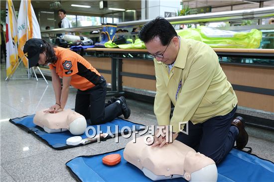 광주광역시 동구(청장 노희용)는 19일 도시철도공사 소태역에서 유관기관, 군장병, 주민 등 300여명이 참여한 가운데 다중탐지키트 검사, 환경제독, 체험교육훈련 등 생물테러 대비훈련을 실시했다. 사진제공=광주시 동구