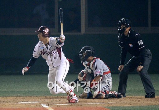 [아시아경제 김현민 기자] 19일 서울 목동구장에서 열린 프로야구 LG 트윈스와 넥센 히어로즈의 경기, 3회말 1사에서 넥센 강정호가 우전 안타를 치며 통산 1500루타를 달성하고 있다. 김현민 기자 kimhyun81@asiae.co.kr<ⓒ세계를 보는 창 경제를 보는 눈, 아시아경제(www.asiae.co.kr) 무단전재 배포금지>