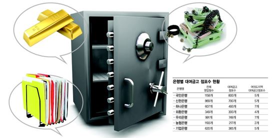 [아시아경제 김대섭 기자] 부자들의 비밀물품 보관함으로 불리는 은행의 '대여금고'가 다시금 주목받고 있다. 최근 새정치민주연합 신학용 의원이 서울 여의도 국회 인근 은행 지점 '대여금고'에 보관한 뭉칫돈이 불법으로 형성된 비자금이라는 혐의를 받고 있기 때문이다. 시중은행 대여금고는 과거 전두환 전 대통령의 '비자금 은닉처'로 알려지면서 세간의 이목을 끌기도 했다. 비밀과 안전이 100% 보장된다는 은행의 대여금고는 누가, 어떻게 이용하고 있을까.20일 은행권에 따르면 시중은행의 대여금고는 1970년대 초반 고객서비스 차원에서 시작됐다. KB국민ㆍ신한ㆍ하나ㆍ외환ㆍ우리ㆍNH농협ㆍIBK기업은행 등 주요 7개 은행 지점 중 대여금고를 운영하는 곳은 전국에 3624개나 있다. 이들 은행 전체 영업점 5787개 가운데 63%를 차지한다. 대여금고가 있는 영업점의 경우 지역별ㆍ지점별로 다르지만 평균 60∼180여개 대여금고가 설치돼 있는 것으로 전해졌다. 이번에 신 의원 때문에 불거진 국회 인근 시중은행의 여의도 대여금고 운영 점포수는 30여개 정도다. <b/>◆골드바ㆍ국채ㆍ증서 등 부자들의 은밀한 '재물보따리'국내 시중은행 가운데 대여금고를 두고 있는 영업점이 가장 많은 곳은 국민은행이다. 800개 지점에 대여금고수가 10만5000개에 달한다. 이어 우리은행(749개), 신한은행(700개), 하나은행(493개), 기업은행(365개), 외환은행(300개), 농협은행(217개) 순이다. 고객들의 대여금고 임대(이용)율은 평균 43∼50% 정도다. 지역별ㆍ지점별로 차이가 있지만 서울 강남지역 등 대여금고 수요가 많은 지점의 경우 임대율이 90% 넘는 경우도 있다.대여금고를 주로 이용하는 고객은 법인, 사업자, 개인 등 다양하다. 하지만 해당 은행에서 기여도가 높은 초우량(VIP)고객들이 대부분을 차지한다고 은행들은 밝히고 있다. 이용자격에 특별한 제한은 없다. 하지만 거래실적이 양호하고 자산 및 신용이 확실한 고객들이 대부분이다. 하나은행 관계자는 "일반적으로 당행에 충성도가 높은 우수고객이 대상이지만 향후 기여도 등을 감안해 영업점장이 인정하는 고객도 가능하다"고 설명했다. 다른 은행 관계자는 "대여금고 여유가 있을 경우 명절이처 긴 연휴기간 동안 일반 고객들에게 단기 사용을 허용하기도 한다"고 말했다. <b/>◆사용 조건은…임차보증금 최고 80만원에도 인기이용방법은 간단하다. 대여금고 이용을 원하는 고객이 인감 또는 서명, 비밀번호 또는 지문 등 거래에 필요한 사항을 신고하면 신규대여 절차를 밟아 사용할 수 있다. 은행별로 차이가 있지만 보증금과 이용 수수료를 부담해야 한다. 임차보증금은 계약해지시에 반환된다. 임차보증금을 폐지한 은행들도 있다. 이용 수수료는 금고 크기와 고객 기여도에 따라 다르다. 무료에서부터 최고 50만원을 받는 곳도 있다. 기본적으로 1년 단위로 계약하는데 3년∼5년 이내에 연단위를 정해 사용할 수도 있다. 갱신기간에는 제약이 없다. 국민은행의 대여금고 이용 연간 수수료는 2만∼5만원이다. 당행 스타클럽 고객이나 플래티넘카드 고객 등 수수료 면제기준이 별도로 있는 경우도 있다. 신한은행은 대여금고 크기가 6개로 구분되는데 보증금은 5만~30만원 수준이다. 수수료는 연간 1만∼3만5000원이고 우수고객의 경우 면제된다.우리은행은 고객이 대여금고를 이용하려면 4만∼50만원까지 임차보증금을 예치해야 한다. 외환은행도 대여금고 크기와 고객 기여도에 따라 최고 80만원까지 임차보증금을 받는다. 농협은행의 임차보증금은 20만∼50만원 정도다. 시중은행 고위관계자는 "대여금고의 경우 임차보증금과 수수료 등을 정해놓고 있지만 적지 않은 경우 초우량고객을 위한 서비스 차원에서 운영하고 있다"면서도 "진짜 자산가들은 은행 대여금고보다는 자택의 비밀금고를 활용하는 사례가 많다"고 전했다. 세무조사 등에서 대여금고는 쉽게 노출될 수 있기 때문이다. <b/>◆보관물품 제한 없고…3단계 이상 보안절차 거쳐야 이용보관할 수 있는 물품에 제한은 없다. 국채ㆍ지방채ㆍ공사채ㆍ주권 등 유가증권을 비롯해 예금통장ㆍ권리증서ㆍ계약서 등 중요문서, 화폐ㆍ귀금속ㆍ보석과 같은 귀중품 등을 보관할 수 있다. 비밀은 철저하게 보장된다. 고객이 대여금고를 이용할 때 은행원은 따로 입회하지 않는다. 대여금고 업무도 VIP고객을 담당하는 소수의 직원만 담당한다. 검찰도 대여금고를 열어보기 위해서는 수색영장이 필요하다.기업은행 관계자는 "은행은 보관에 적합한 물품인지를 확인할 수 있으며 위험 물질이나 부패성 물질 등 보관에 적합하지 않다고 판단되는 때는 보관을 거절할 수 있다"고 말했다.대여금고는 과거 열쇠 방식의 보관함이 많았지만 최근 7∼8년 전부터 지문인식방식이 많이 이용되고 있다. 분실사고 위험은 사실상 제로다. 금고방 입구가 2중, 3중 강철문으로 보호돼 있고 비밀번호ㆍ지문인식 방법 등으로 이용되기 때문에 이용자가 아닌 외부인에게 노출될 일은 없다. 고객은 은행으로부터 대여금고 고유번호를 부여받게 되고 본인이 정한 비밀번호와 지문인식 등 3단계 보안절차를 거쳐야만 이용할 수 있다. 물론 고객이 대여금고에 물품