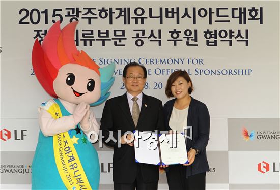 2015광주하계유니버시아드대회 조직위원회는 20일 오후 서울 LF 사옥에서 김윤석 사무총장(왼쪽)과 LF 조수빈 상무가 참석한 가운데 정장의류 부문 공식 후원협약을 체결했다.