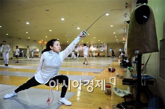 [아시아경제 김현민 기자] 인천아시안게임 개막 D-30일인 20일 서울 노원구 공릉동 태릉선수촌에서 열린 국가대표 선수단 미디어데이에서 펜싱 남현희가 훈련을 공개하고 있다.김현민 기자 kimhyun81@asiae.co.kr<ⓒ세계를 보는 창 경제를 보는 눈, 아시아경제(www.asiae.co.kr) 무단전재 배포금지>
