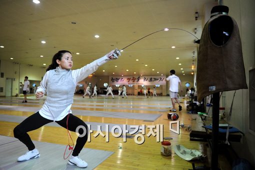 [아시아경제 김현민 기자] 인천아시안게임 개막 D-30일인 20일 서울 노원구 공릉동 태릉선수촌에서 열린 국가대표 선수단 미디어데이에서 펜싱 남현희가 훈련을 공개하고 있다.김현민 기자 kimhyun81@asiae.co.kr<ⓒ세계를 보는 창 경제를 보는 눈, 아시아경제(www.asiae.co.kr) 무단전재 배포금지>