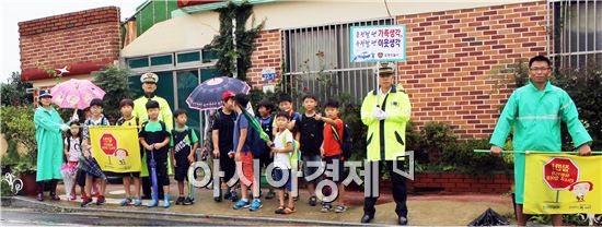 함평경찰서(서장 박희순)는 25일 녹색어머니회와 함께 함평초등학교 개학을 맞아 함평읍 천주교 성당 앞초등학교 입구에서 등교하는 학생들을 대상으로 어린이보호구역 교통사고 예방을 위한 교통안전 캠페인을 실시했다.<br /> <br /> 이날 피켓 등을 활용, 보호구역내 과속, 정지선지키기, 불법주정차 금지 등 어린이 통학로 안전확보에 대해 홍보했다.<br /> <br /> 한 학부모는 “개학을 맞아 아이들이 등교를 하는 것이 걱정되었는데 경찰관과 녹색어머니가 교통수신호를 해 주어서 많이 안심이 된다”고 말했다.<br /> <br /> 류운기 교통관리계장은 “어린이 보호구역내 교통사고 예방을 위해 스쿨존 위반에 대해서는 지속적인 단속과 홍보를 병행해 아이들의 안전을 확보하는데 최선을 다 하겠다”고 말했다.