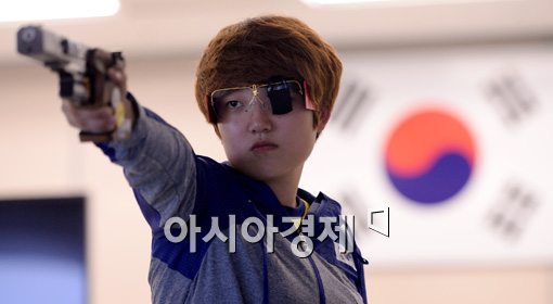 [진천=아시아경제 김현민 기자] 26일 충북 진천선수촌에서 인천아시아경기대회를 앞두고 열린 사격 국가대표 선수단 미디어데이 행사에서 여자 10m 권총 김장미가 공개훈련을 하고 있다. 김현민 기자 kimhyun81@asiae.co.kr<ⓒ세계를 보는 창 경제를 보는 눈, 아시아경제(www.asiae.co.kr) 무단전재 배포금지>