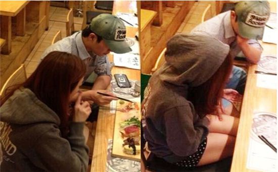 초밥집에서 함께 식사를 하고 있는 홍진호와 레이디 제인[사진=온라인 커뮤니티]