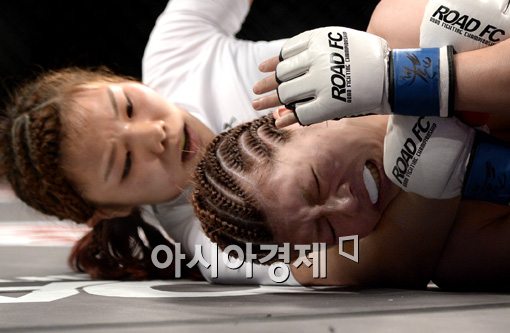 [아시아경제 김현민 기자] 30일 서울 홍은동 그랜드힐튼호텔에서 열린 국내 MMA 종합격투기 '로드 FC 018'에서 남자 잡는 여성파이터 김지연이 일본 카미카제 유키미와 대결을 펼치고 있다. 김현민 기자 kimhyun81@asiae.co.kr<ⓒ세계를 보는 창 경제를 보는 눈, 아시아경제(www.asiae.co.kr) 무단전재 배포금지>