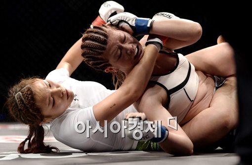 [아시아경제 김현민 기자] 30일 서울 홍은동 그랜드힐튼호텔에서 열린 국내 MMA 종합격투기 '로드 FC 018'에서 남자 잡는 여성파이터 김지연이 일본 카미카제 유키미를 상대로 파상공세를 퍼붓고 있다. 김현민 기자 kimhyun81@asiae.co.kr<ⓒ세계를 보는 창 경제를 보는 눈, 아시아경제(www.asiae.co.kr) 무단전재 배포금지>