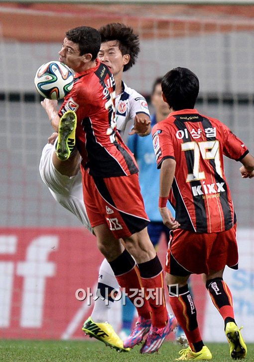 [아시아경제 김현민 기자] 31일 서울월드컵경기장에서 열린 프로축구 'K리그 클래식 2014' FC 서울과 제주 유나이티드의 경기에서 서울 오스마르와 제주 김현이 치열한 볼다툼을 벌이고 있다. 김현민 기자 kimhyun81@asiae.co.kr<ⓒ세계를 보는 창 경제를 보는 눈, 아시아경제(www.asiae.co.kr) 무단전재 배포금지>